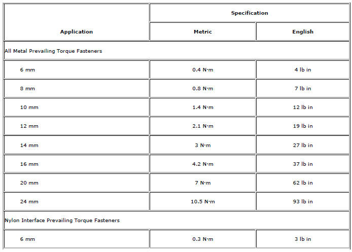 Metric Prevailing Torque Fastener Minimum Torque Development